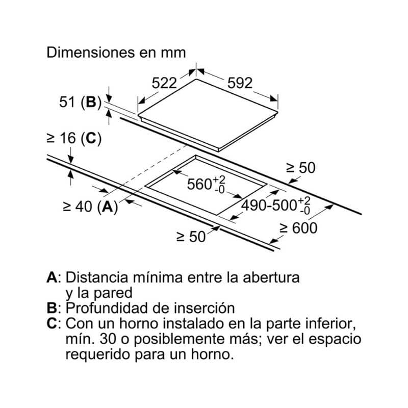 – Kích thước lắp đặt (HxWxD): 51 x 560 – 560 x 490 – 500 mm
