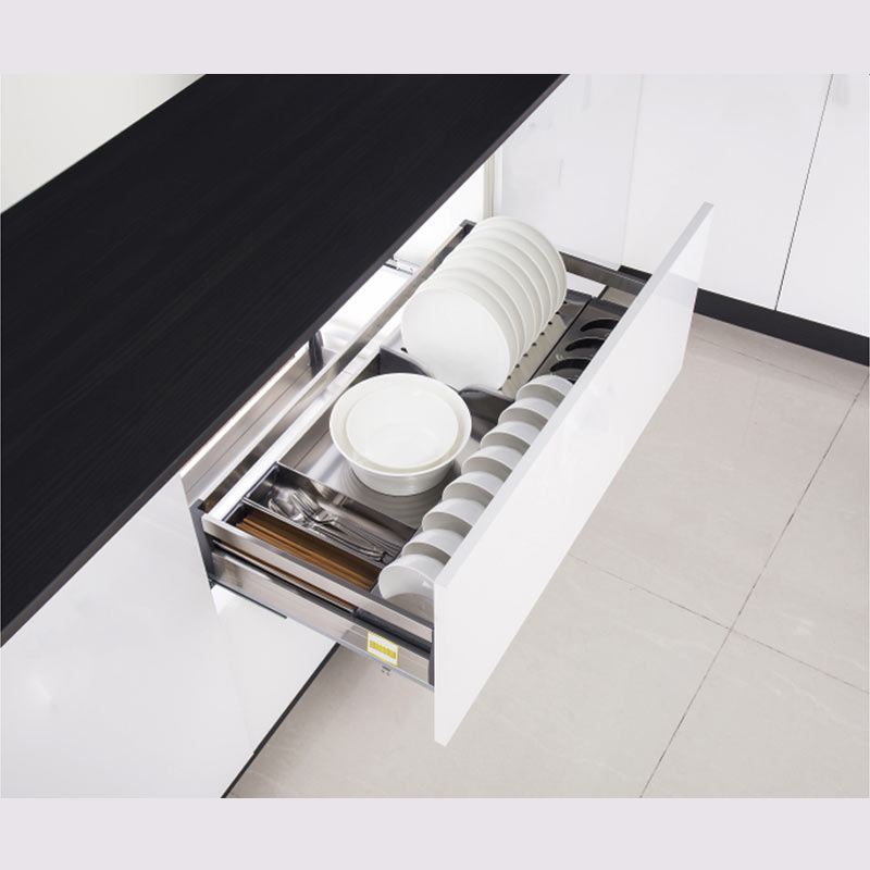 - Thiết kế thông minh có tính thẩm mĩ cao, ray chuyển động vô cùng êm ái, cùng với đó là khả năng phân chia gọn gàng, lịch sự tăng tính thẩm mỹ cũng như khả năng chứa của tủ kho.