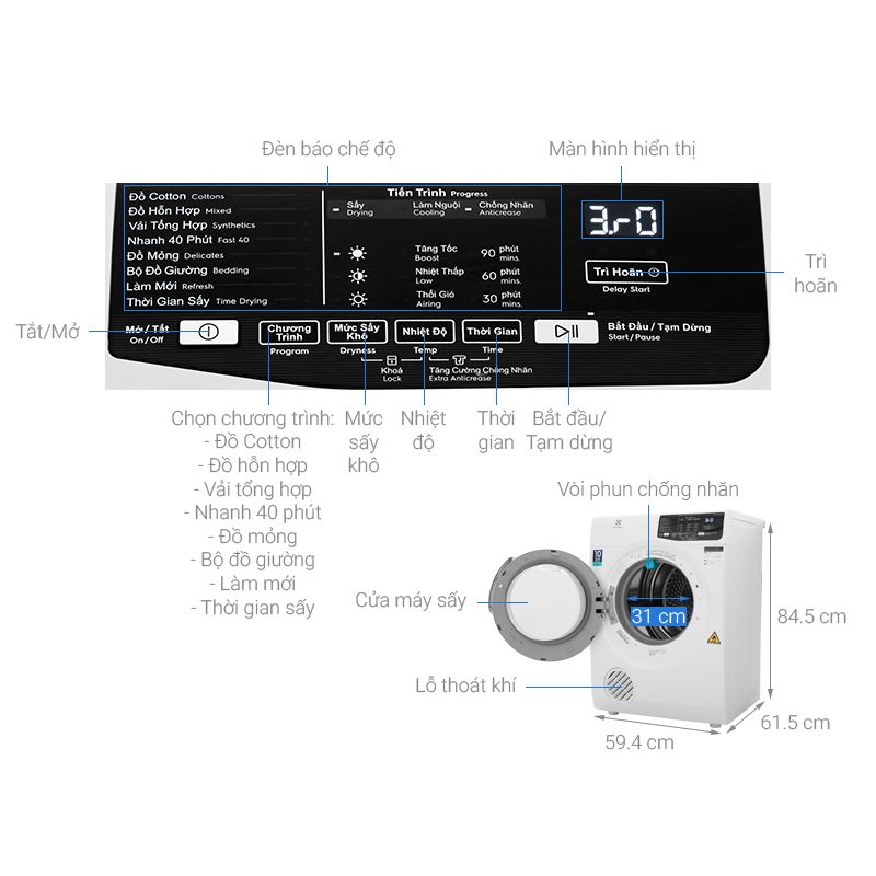 – Tiết kiệm điện, sấy khô nhanh bởi công nghệ sấy thông hơi.