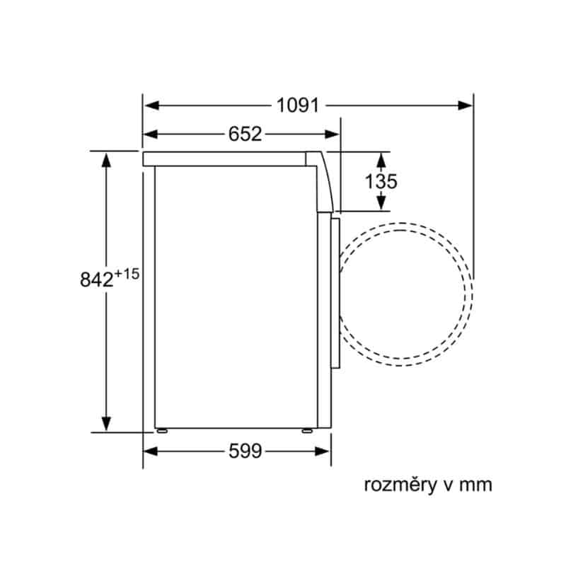 – Độ sâu của máy khi mở cửa góc 90o 1063 mm